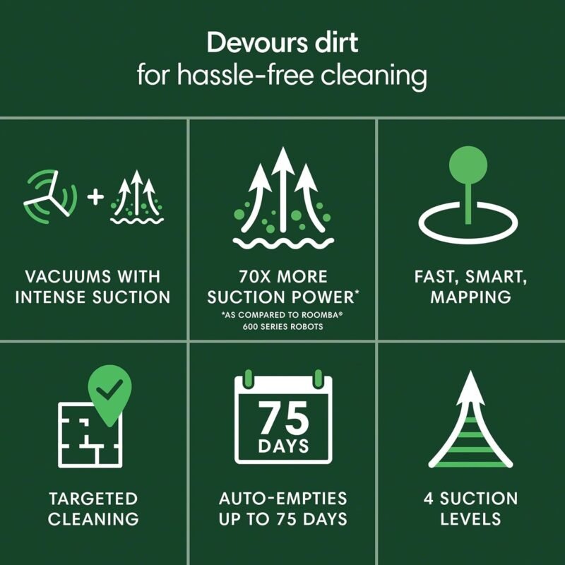 iRobot Roomba 105 Vac Robot Vacuum with AutoEmpty Dock – Self-Empties for 75 Days, Easy to use, Intense Power-Lifting Suction, LiDAR Navigation, Multi-Surface Cleaning, Cleans in Neat Rows