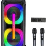 Karaoke Machine with 2 Wireless Microphones, 【Dual 60W 6.5"Subwoofer & 400W Peak】Big Loud Bluetooth Party Speaker with Disco Lights, Portable PA System with TWS Stereo Sound & Deep Bass, Gift for All