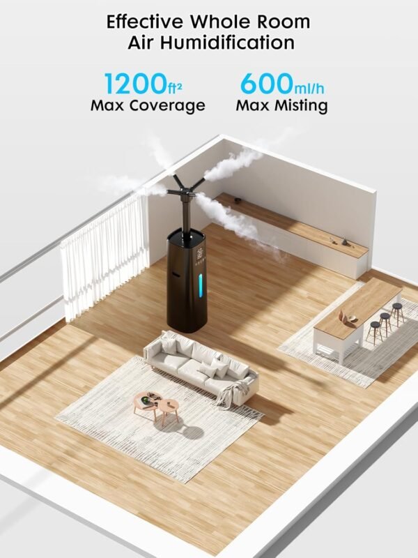 15L/4Gal Humidifier Large Room, 600mL/h Misting, 1200ft² Coverage, Auto Humidity Control, 72H Runtime, Top Fill, Aroma Diffuser, Sleep Mode, 12H Timer, Auto Shutoff Protection