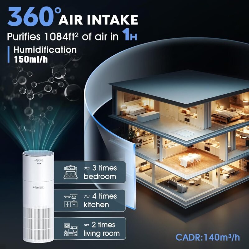 Air Purifier And Humidifier Combo For Large Room Up to 1084 Ft², 3-Stage Filter Humidifier and Air Purifier in One With WIFI Control – 22Db(Humidification cannot be used alone)