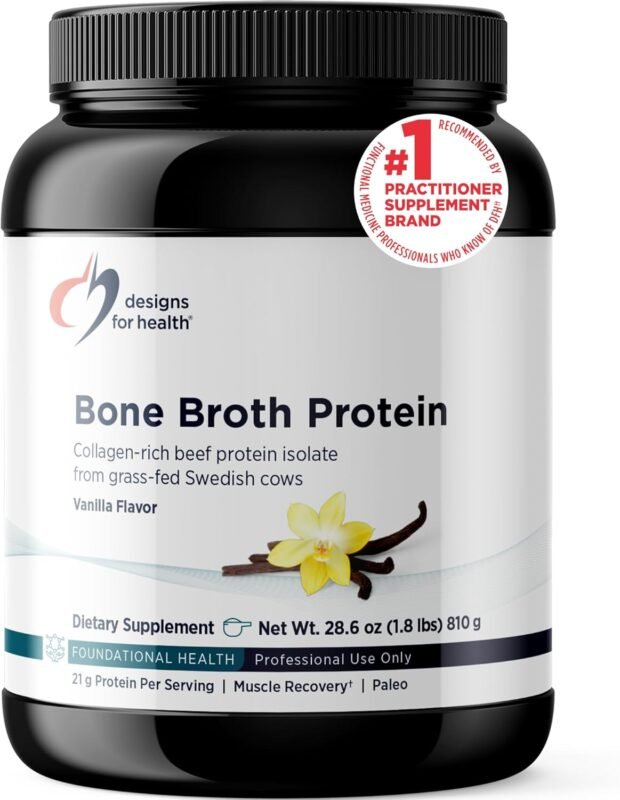 Designs for Health Bone Broth Protein Powder – 21g Grass-Fed, Collagen-Rich Beef Protein Isolate – Vanilla, Paleo, Non-GMO, Dairy-Free (30 Servings / 810g)