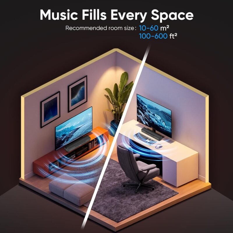 Sound Bar for Smart TV, Bass Boost and Crisp Vocals,Bluetooth Soundbar for TV/PC/Gaming/Projectors,Optical/AUX/Wall Mount,17inch