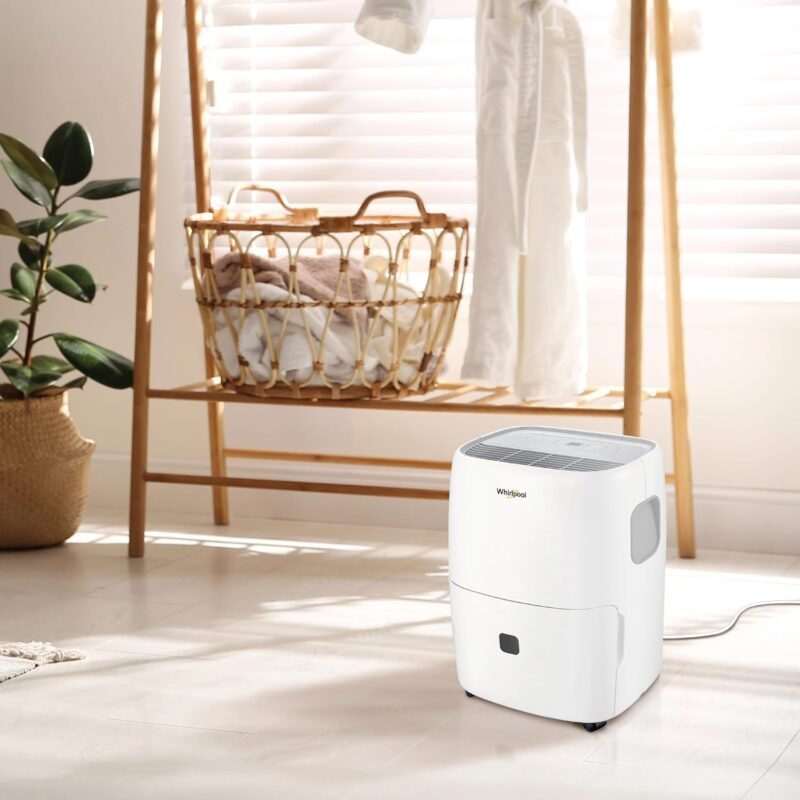 Whirlpool Energy Star 50-Pint Portable Dehumidifier with Built-in Pump, Auto-Shutoff and Timer, Home Dehumidifier and Moisture Absorber For Basement, Garage, Living Room in White