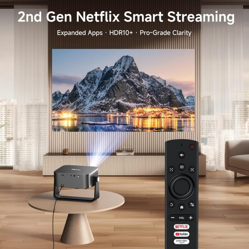 [2000 ANSI/Auto Focus & Keystone/Built-in APP] 4K Outdoor Projector with Wifi and Bluetooth, Smart Portable Projector with Built in Apps YouTube/PrimeVideo & Dolby, Home Theater Projector with HDR10+