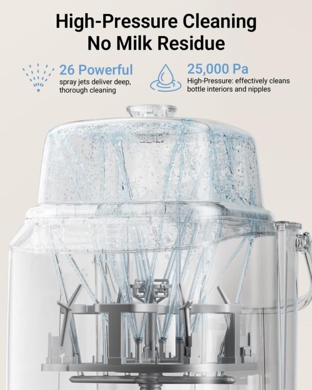 Bear Bottle Washer Pro, Baby Bottle Washer and Sterilizer and Dryer – All in One Machine for Bottles, Pump Parts & Baby Essentials with 90 Detergent Tablets – Effortless, Time-Saving