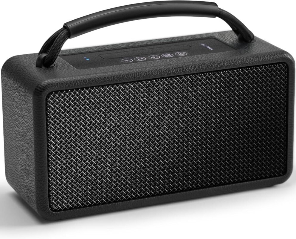 DINDIN Portable Bluetooth Speaker: 80W (Peak), 20H Playtime, Loud Wireless Wood Speakers with Bass, AUX and USB Input, Subwoofer, TWS Pairing, Vintage Speaker for Outdoor, Home, Office (Black)