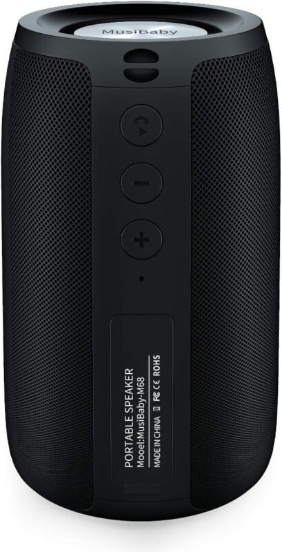 MusiBaby M68 Portable Bluetooth Speaker – Wireless Waterproof Sound for Home and Outdoor Use – Deep Bass, Dual Pairing, 24H Playtime, Compact Design (Black)