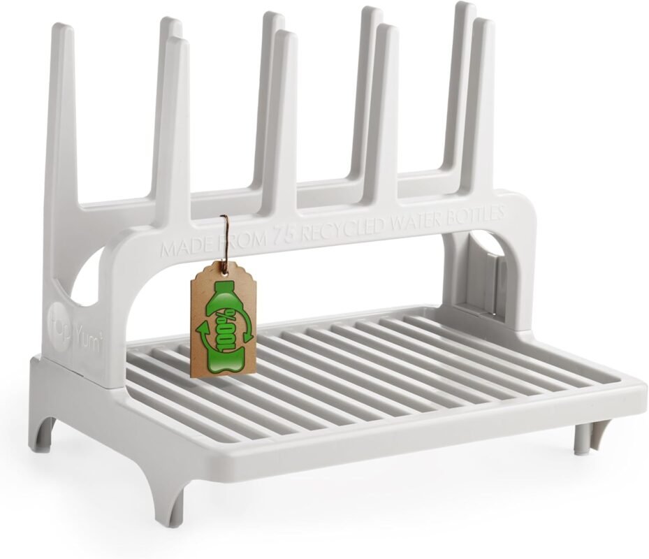 PopYum Seattle Gray Space Saving Drying Rack from 100% Recycled Bottles, countertop for Baby Bottle, Plastic Bags, Cups, Glass, tumblers, Compact
