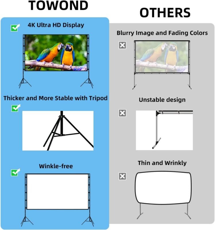 TOWOND Projector Screen with Stand, 100 inch Outdoor Projector Screen Portable Indoor Projection Screen 16:9 4K Rear Front Movie Screen with Carry Bag for Home Backyard Theater 100 inch