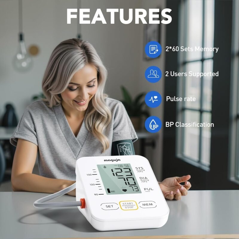 Blood Pressure Monitor, maguja Blood Pressure Monitors for Home Use, Automatic Digital Upper Arm BP Machine with Blood Pressure Cuff, 2 Users