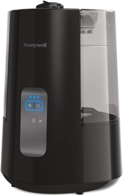Honeywell Dual Comfort Cool + Warm Mist humidifier. Humidifier for Bedroom, Office, Living Room and Home. Provides Temporary Relief from Dry air discomforts – Black, HWC775B