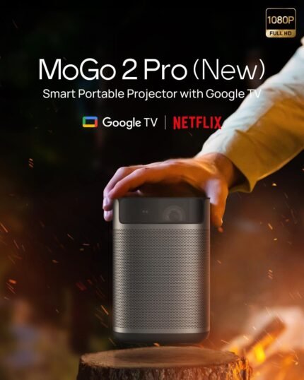 XGIMI MoGo 4 2025 NEW Portable Projector with PowerBase Stand, 5 Hours of Playtime, Google TV with Licensed Netflix, 360° Adjustable Stand, 450 ISO Lumens, 2 x 6W Harman Kardon