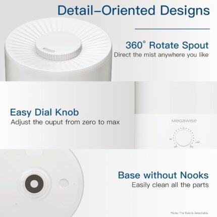 MEGAWISE 2 pack 3.5L Ultrasonic Cool Mist Humidifier – Top-Fill, Essential Oil Diffuser, Quiet Operation, Night Light, Auto Shut-Off for Home & Office (2)