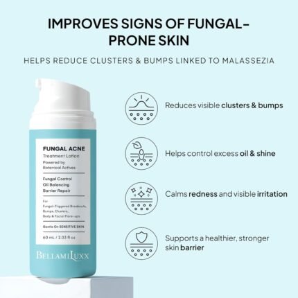 Fungal Acne Treatment Lotion: Effective Face & Body Pimple Cream for Bumps, Clusters, Itch & Redness – Fungal Prone Skin Acne Treatment Moisturizer for Teens & Adults with Natural Actives