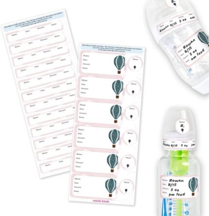 Mabel’s Labels Baby Bottle Labels – 24 Customizable Write-and-Wipe Name Labels for Daycare, Milk Storage & Bottles – Reusable, Dishwasher, Sterilizer & Microwave Safe – Hot Air Balloon