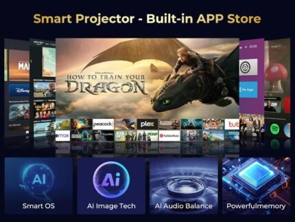 GooDee 4K Smart Projector with 5G WiFi and Bluetooth, Built-in Streaming Apps, Dolby Audio 400″ Outdoor Movie Projector for Home Theater, Compatible with TV Stick, iOS, Android