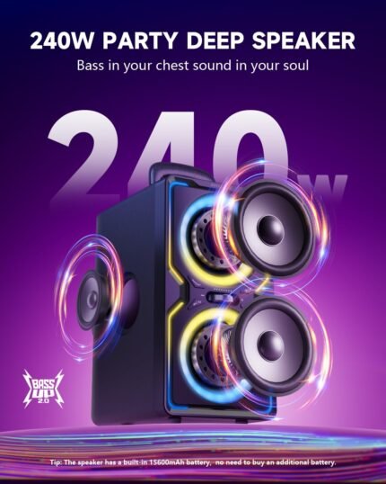 Hotlemon Large Bluetooth Speaker: 240W Peak Powerful Loud Sound with Deep Bass, 15H Playtime, Fast Charge, TWS, Portable Wireless Speakers for Outdoor, Party, Beach, Backyard, Home, Outside (Black)