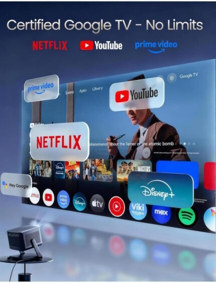 Dangbei DBOX02 Pro 4K Projector GTV, 2000 ISO Lumens, HDR10+, Dolby Audio, 3D Ready, Auto Keystone/Focus, 300″ Screen, WiFi & Bluetooth Home Theater Projector for Bedroom