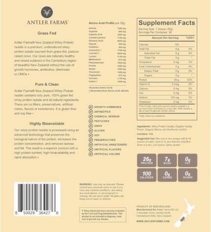 Price: (as of – Details) Product description ANTLER FARMS 100% GRASS FED, NEW ZEALAND WHEY PROTEIN ISOLATE – VANILLA WHY
