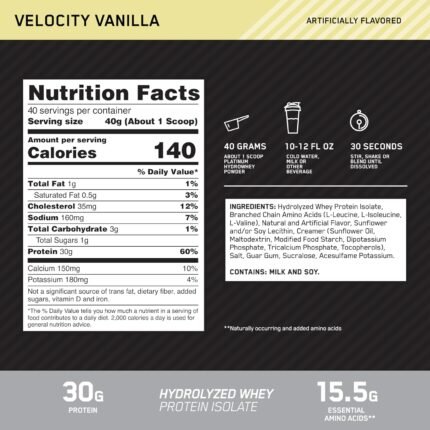 Optimum Nutrition Platinum Hydrowhey Protein Powder, 100% Hydrolyzed Whey Isolate Powder, Flavor: Velocity Vanilla, 3.5 Pounds (Packaging May Vary)