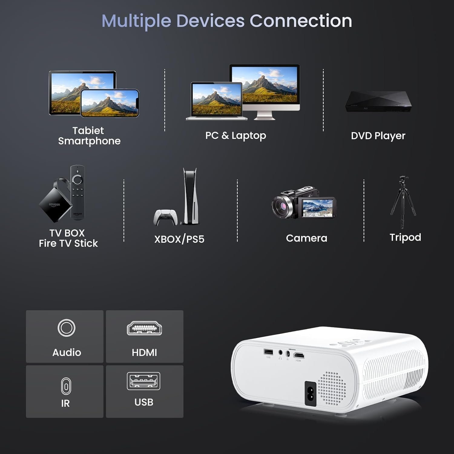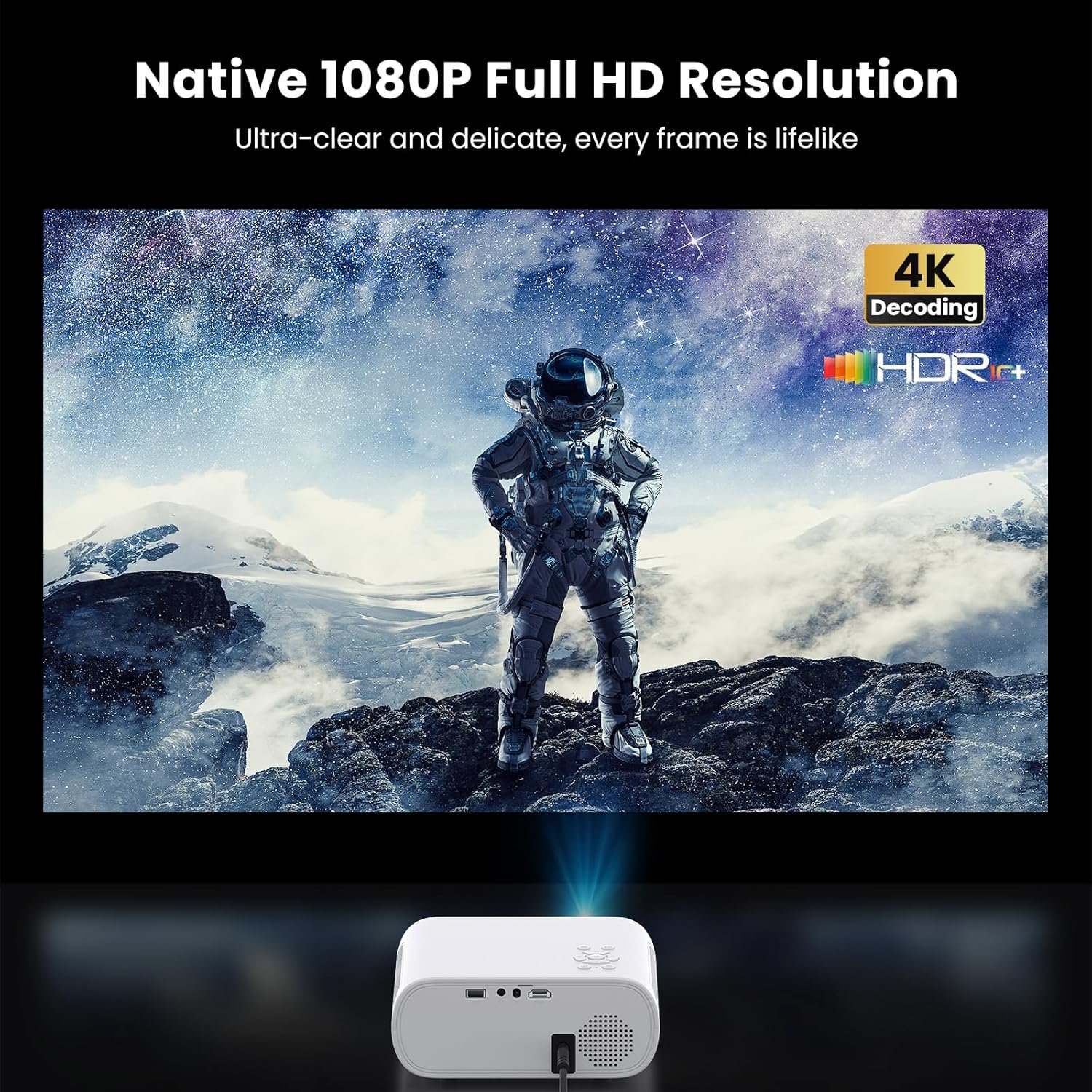 High-Quality Audio: The movie projector features dual 8W built-in speakers for an impressive audio experience. With rich bass and clear sound details, it offers superior audio quality compared to standard home projectors. Enjoy an immersive viewing experience as powerful sound enhances your favorite movies and shows