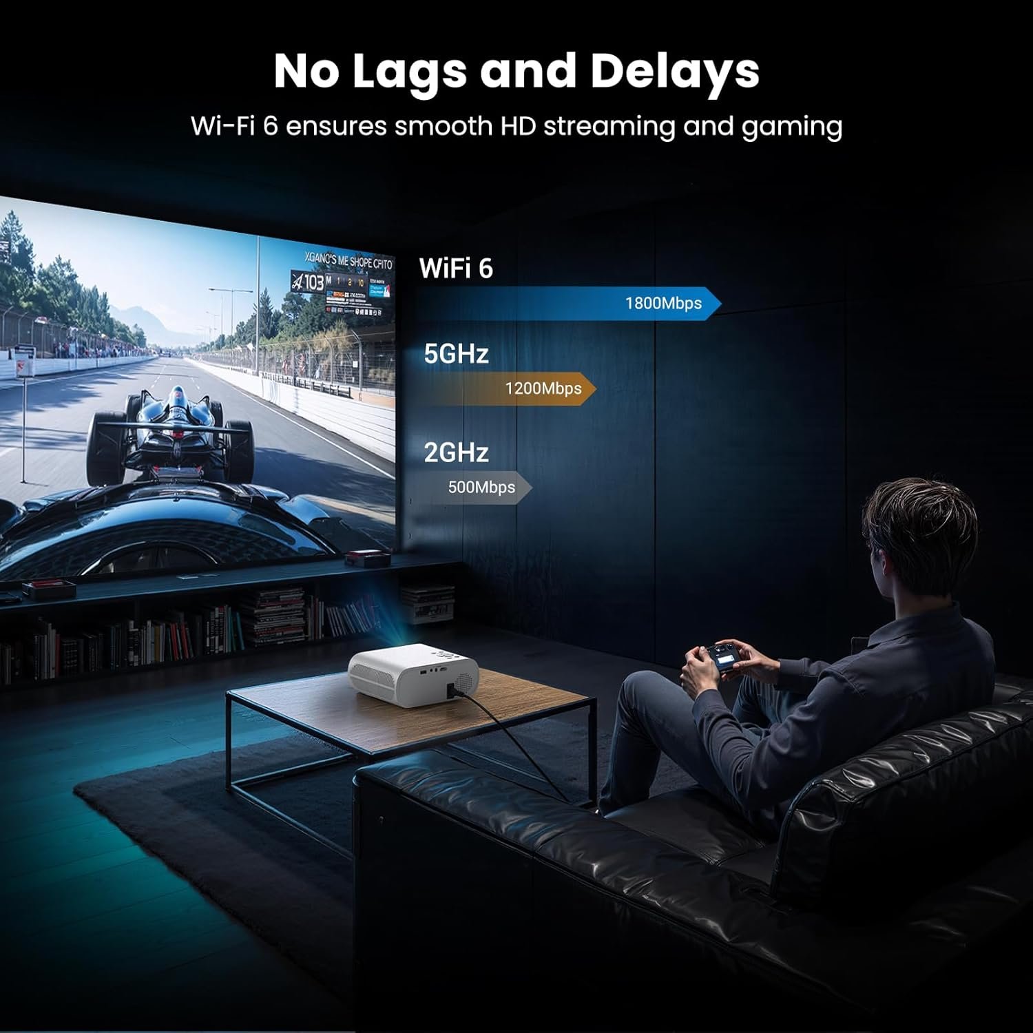Lightning-Fast WiFi 6 & 5.2 Bluetooth Technology: Enjoy seamless streaming with our upgraded WiFi 6 technology, which eliminates buffering for smooth, uninterrupted viewing ensuring an exceptional entertainment experience without delays. The Bluetooth projector with two-way Bluetooth 5.2 for wireless connections to speakers and headphones, enhancing audio quality for a better viewing experience.