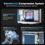 𝐏𝐨𝐰𝐞𝐫𝐟𝐮𝐥 𝐃𝐞𝐡𝐮𝐦𝐢𝐝𝐢𝐟𝐢𝐜𝐚𝐭𝐢𝐨𝐧 𝐟𝐨𝐫 𝐚 𝐂𝐨𝐦𝐟𝐨𝐫𝐭𝐚𝐛𝐥𝐞 𝐇𝐨𝐦𝐞 – The 12L dehumidifier features an carnotcycle compression system that removes up to 30 pints of moisture per day (at 95°F, 90%RH), making it perfect for large spaces up to 1500 sq. ft. Whether it’s your bathroom, basement, bedroom, or entire home, it keeps your space dry and comfortable all day long.