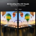 [HIGHER QUALITY IMAGES: 2000 ANSI & 4K Decoding] This 4K decoding projector offers up to 2000 ANSI lumens brightness and supports 4K decoding video, ensuring bright and clear images whether it’s day or night. Portable projector with a 20000:1 contrast ratio and 95% color gamut present richer light and dark levels and color details, making every frame vivid and lively. Enjoy a cinema-quality experience at home, and it’s also the perfect choice for outdoor movie nights.