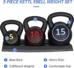 3-Piece Kettlebell Set, Exercise Fitness Weight Set with Base Rack for Home Gym, Home Workouts, Strength Training, Include 5 lbs, 10 lbs, 15 lbs