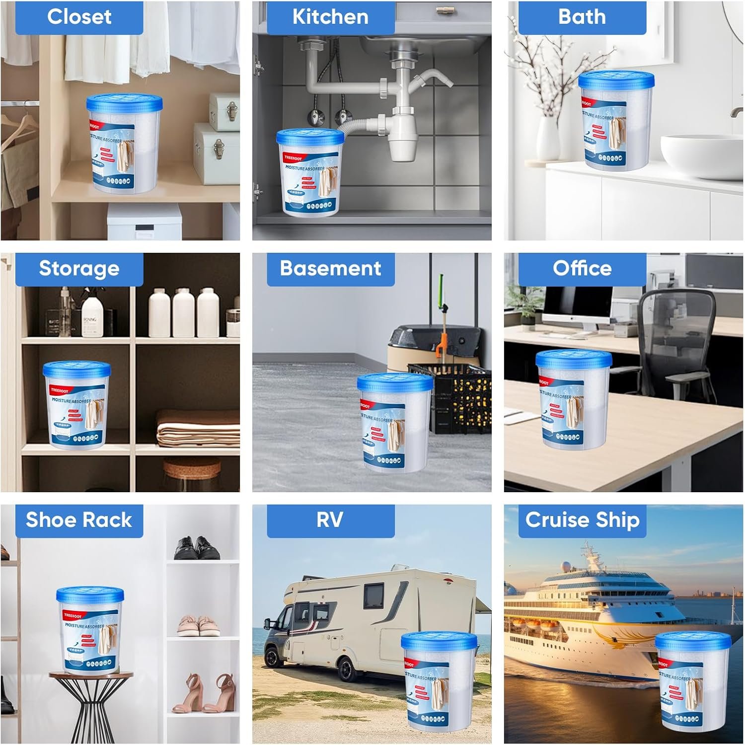 【Versatile & Convenient】 Widely suitable for small to medium enclosed spaces such as wardrobes, bathrooms, car interiors, basements, and kitchens, effectively solving moisture problems in damp corners.