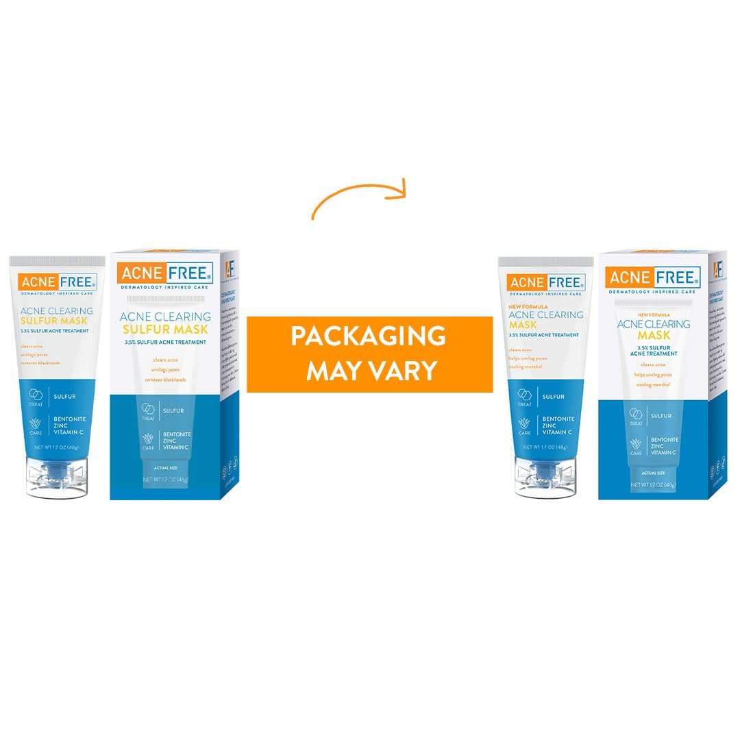 AcneFree Acne Clearing Mask, 3.5% Sulfur Acne Treatment, Absorbs Excess Oil and Unclogs Pores with Vitamin C, Bentonite, and Zinc, 1.7 Ounce