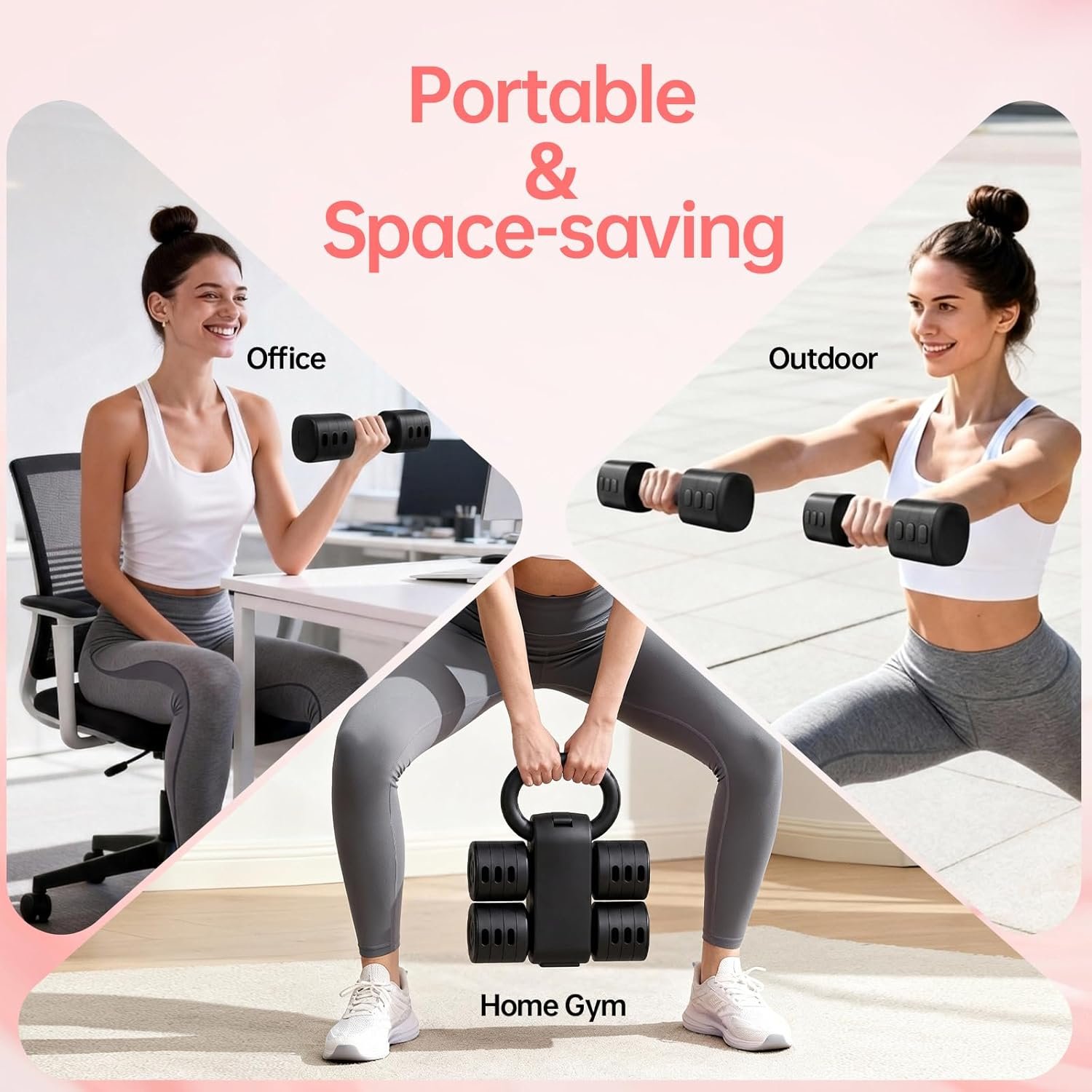 Adjustable Kettlebell Set, 4-in-1 Free Weight Kettlebell sets (5.5lbs 7.7lbs 9.9lbs 12.1lbs) for women, Hand Weight Dumbbell Set of 2 for Home Gym Fitness Training