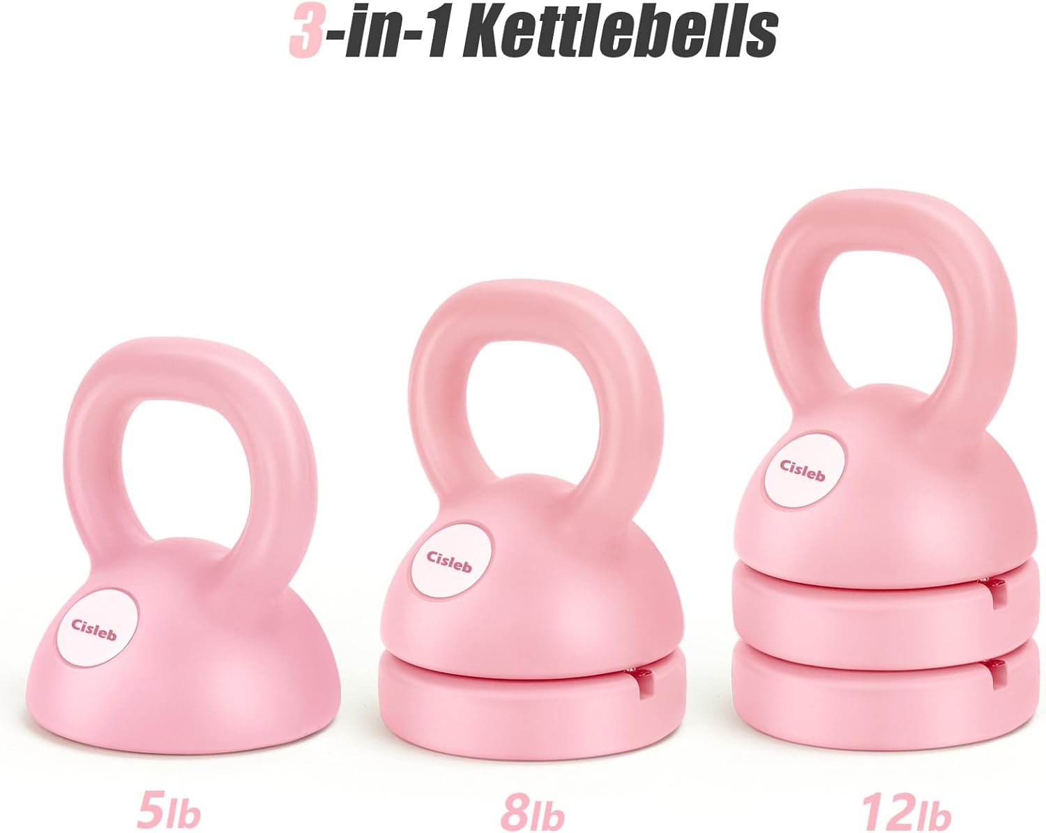 Adjustable Kettlebell Weight Set: 3-in-1 Kettlebells (5lbs 8lbs 12lbs) for Home Gym Full-Body Workout Strength Training Weight Loss | Good for Beginners