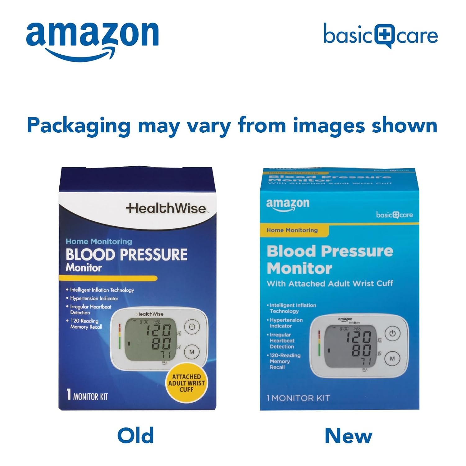 Amazon Basic Care Wrist Blood Pressure Monitor – Digital BP Monitor with Large Display and Intelligent Inflation Technology