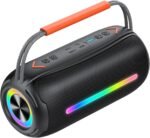 [Dynamic RGB Lights] The Bluetooth speaker with lights syncs vibrant, dynamic light shows to your music’s beat, transforming any space into a party. The gradient lighting creates an electrifying atmosphere, enhancing your music listening experience. Easily connect to phones, tablets, and laptops for the perfect audio experience.