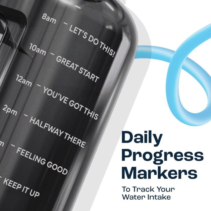 Track how much you drink – Our BPA Free one gallon water bottle comes with time markers + motivational quotes on the side so you can see your daily water intake and stay on track meet your health and fitness goals.