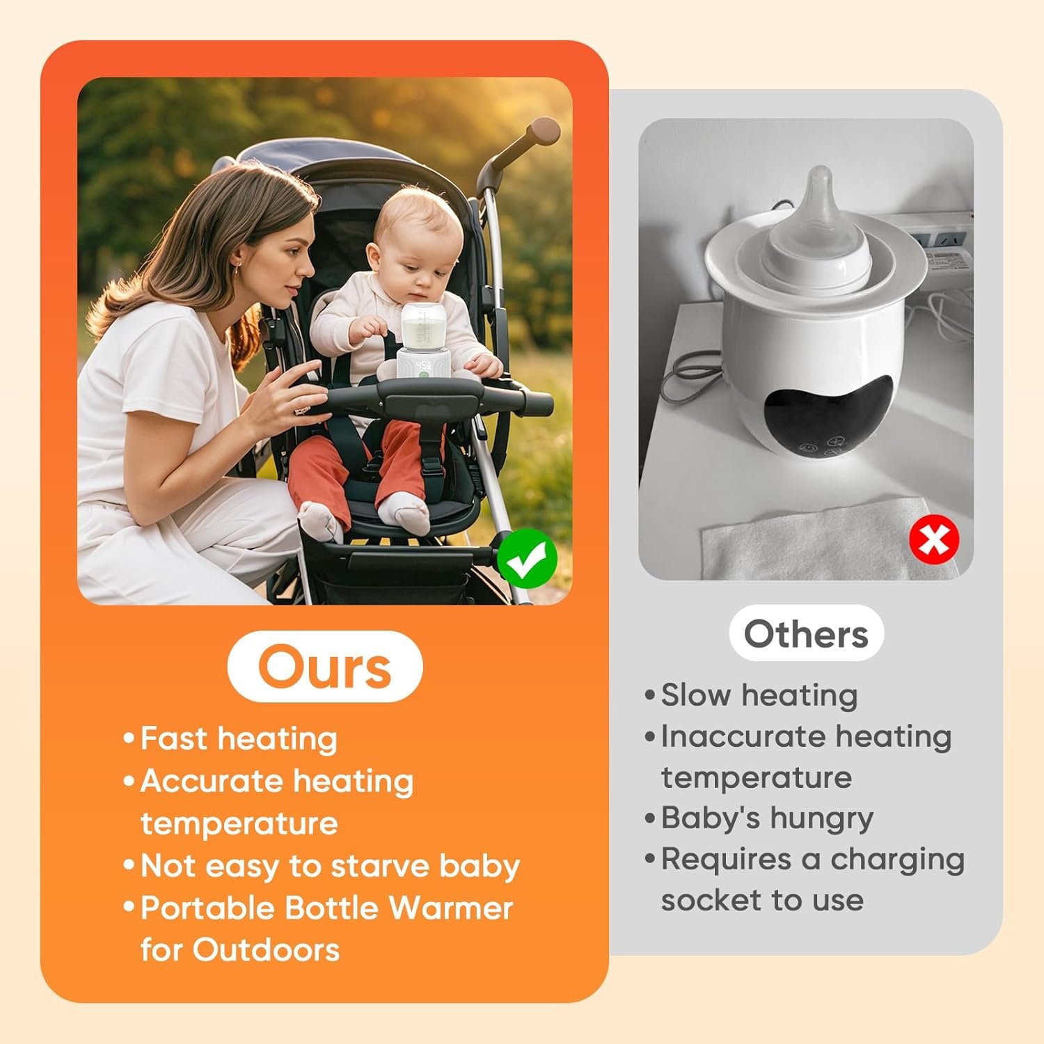 🍼【Portable & Cordless Design】♨︎ Bottle Warmer on the go is best for warming milk and formula anywhere; lightweight design fits any purse, baby bag and stroller; ideal for home, office, travel or picnic