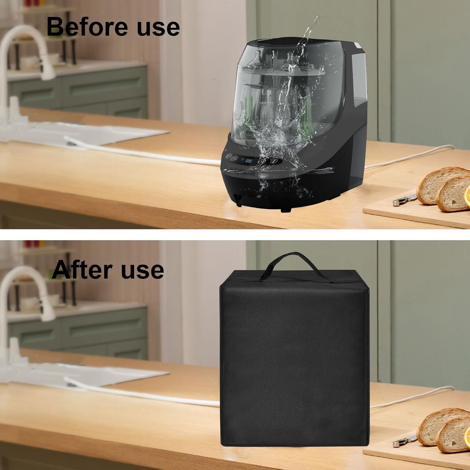 Bottle Dryer Protective Cover: Keep your baby bottle washer, sterilizer & dryer away from dust, water stains and hair in the air. Provide reliable protection your All-in-One cleaning machine