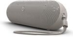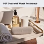 The portable speaker is IP67-rated for dust and water resistance for outstanding durability and includes a removable lanyard and soft-grip silicone backing to make it easy to take with you.
