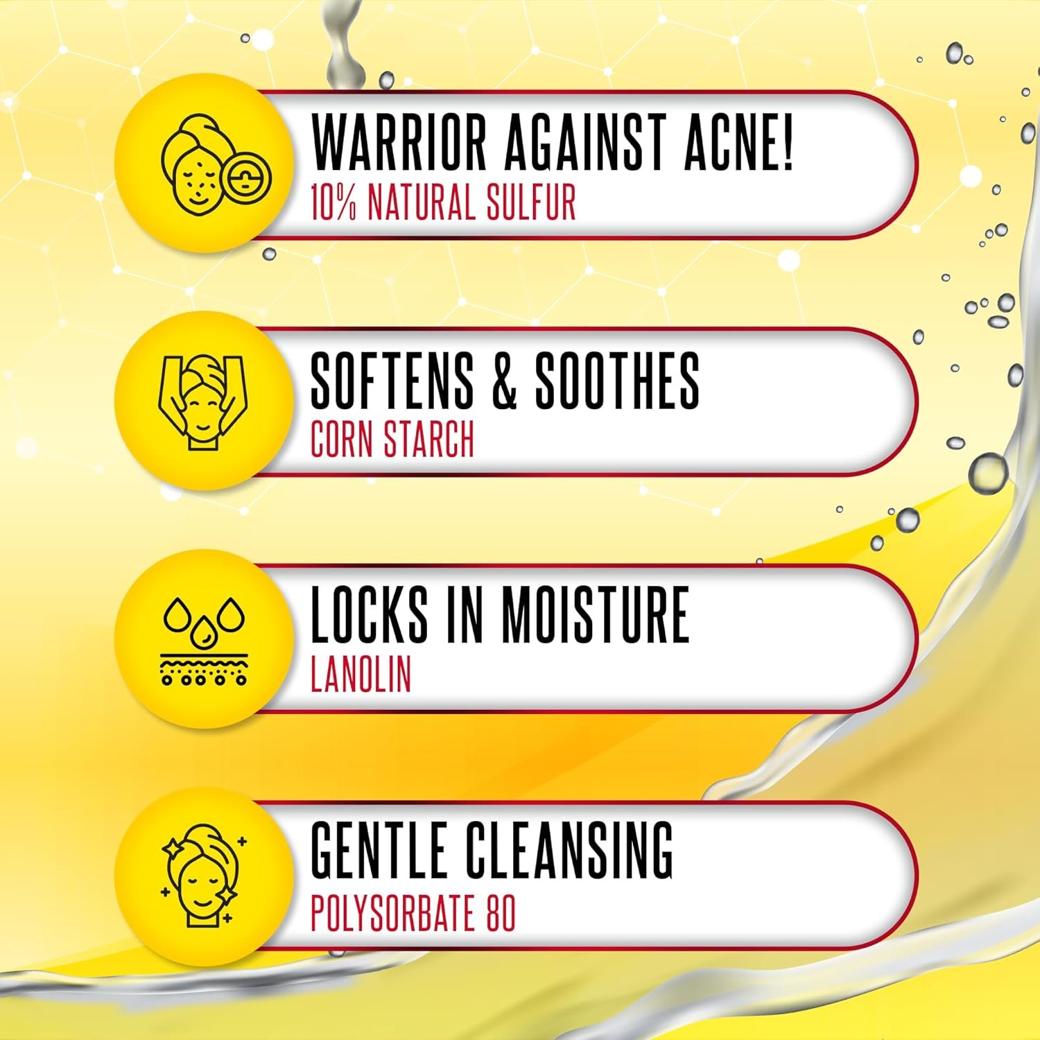 Introducing Biosulfur, the ultimate solution for clear and healthy skin. Our product is expertly formulated to tackle acne and its effects, providing a comprehensive skincare solution. With a potent 10% sulfur concentration, Biosulfur effectively reduces inflammation and combats acne, ensuring your skin remains clear and radiant. This powerful ingredient works diligently to remove dead skin cells, opening clogged pores and preventing future breakouts, blackheads, and excess oil. Say goodbye to facial shine as Biosulfur’s unique formula helps to control oil production, leaving your skin with a natural, matte finish. Biosulfur is not just about treating acne; it also boasts antifungal and antibacterial properties, ensuring your skin is protected from harmful bacteria and fungi. This makes it an ideal choice for those seeking a holistic approach to skincare. Our 4.4 oz size comes in a convenient 3-pack, ensuring you have a long-lasting supply of this essential skincare product. Whether you’re searching for a sulfur soap, acne treatment, or sulfur face wash, Biosulfur is the answer. With people increasingly seeking solutions like sulfur mask, sulfur cream, sulphur soap bar, jabon de cascabel, acne soap, and jabon de azufre, it’s clear that many are looking for the benefits sulfur provides. Biosulfur stands out in the market as a trusted and effective solution for those struggling with acne and oily skin. Harness the power of sulfur and elevate your skincare routine with Biosulfur today.