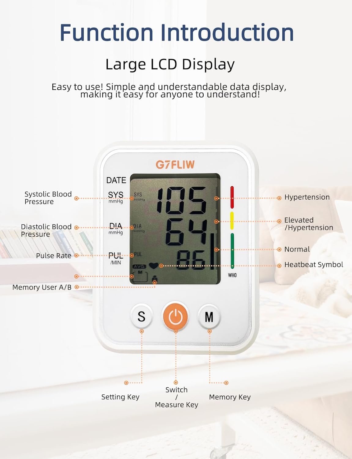 Clear Voice Broadcast: G7FLIW arm cuff blood pressure monitors for home use with built-in ameciran accent voice broadcast function announces readings aloud in clear English. It’s perfect for users with poor eyesight or those who prefer auditory feedback. Nice gift for mother, father, grandma, grandpa, needed families and friends, and yourself.