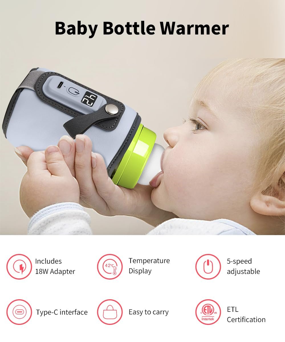 Bottle Warmer, Baby Milk Warmer with 5-Speed Temperature Control, Stable Constant Warming with LED Display, Requires Power Source, USB Powered with 18W Adapter, Suitable for Home and Travel