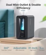 【Rapidly Banish Dryness】Ideal for large rooms up to 500 ft², this humidifiers for home features dual 360° nozzles that release a 5μm ultra-fine mist in all directions. With 370ml/h output and 31” mist height, it relieves dryness quickly without wetting surfaces—great for bedrooms, nurserie.