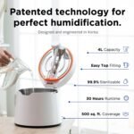LONG-LASTING HYDRATION & ADJUSTABLE MIST: With a 4-liter tank, this small humidifier for bedroom & living room provides up to 30 hours of continuous mist at level 1 and 10 hours at level 3 to meet your room’s hydration needs.