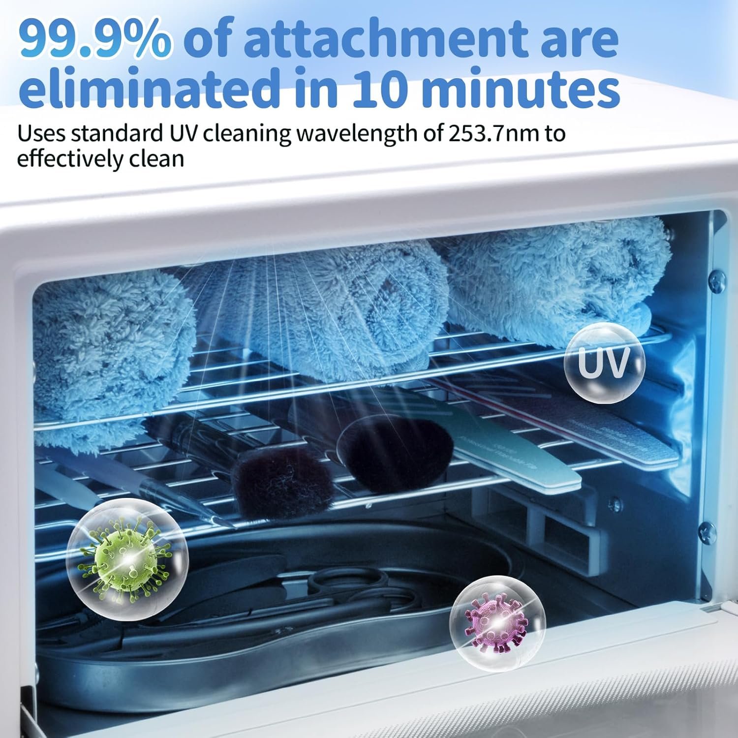 【PTC Hot Air Drying Disinfection Cabinet】: This nail tool cleaning cabinet uses an advanced PTC hot air system with an internal temperature of up to 167°F, which quickly dissipates moisture from nail tools, greatly shortens drying time, helps keep your tools dry, extends their service life and maintains them in optimal condition.