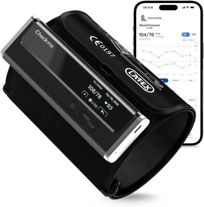 Checkme WiFi Blood Pressure Monitor for Home Use, Bluetooth Automatic Arm Cuff, Smart Digital BP Machine, Wireless Portable USB Rechargeable with X3 Accuracy Function, Free APP for iOS & Android Black