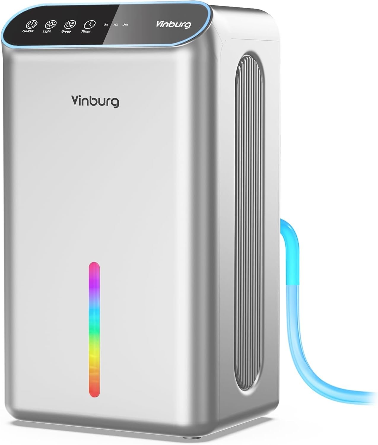 Dehumidifier for Home (85 OZ Water Tank, 800 sq.ft) Quiet Small Dehumidifier for Basement Bedroom Bathroom with Drain Hose, 3 Gear Timer, Sleep Mode, Auto Shut Off, 7 Color Ambient Light