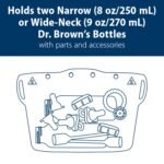 STERILIZE MULTIPLE ITEMS. Holds two Narrow (8 oz/250 mL) or Wide-Neck (9 oz/270 mL) Dr. Brown’s Bottles along with parts and accessories