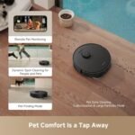 Designed for Pet Owners in Mind: Enjoy a pet-friendly home with personalized cleaning tailored to your space. The robot vacuum detects objects around pets, like food bowls and litter boxes, allowing you to choose to clean around them or avoid them. Stay connected with your furry friends while away using real-time video calls and two-way voice interaction.