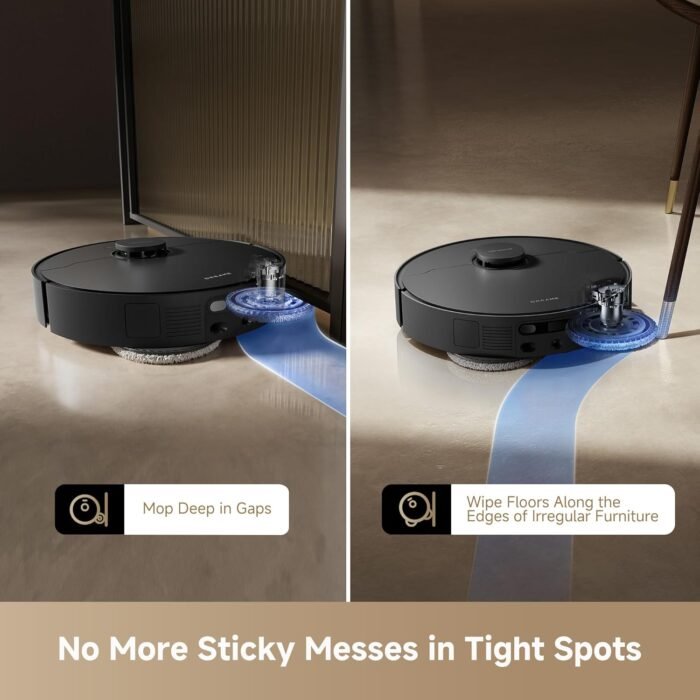 Deep Mess Removal from Tight Spaces: With flexible MopExtend technology, the robot vacuum nimbly glides around furniture legs, floor gaps, and edges for broader coverage.